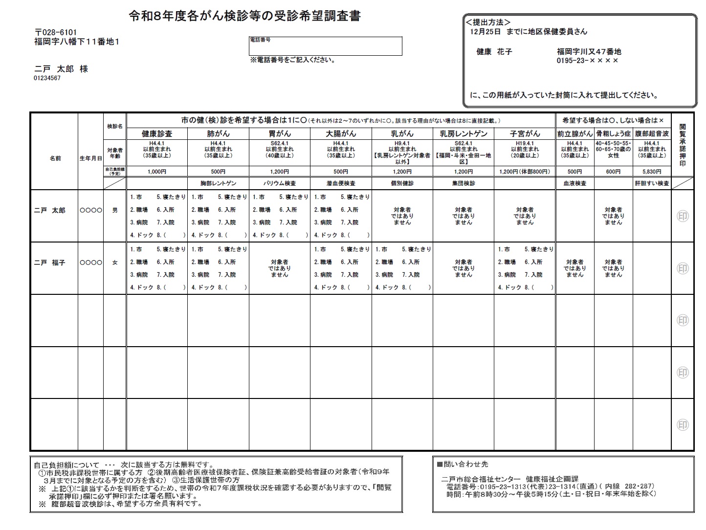 〈イメージ〉令和8年度がん検診等の受診希望調査書