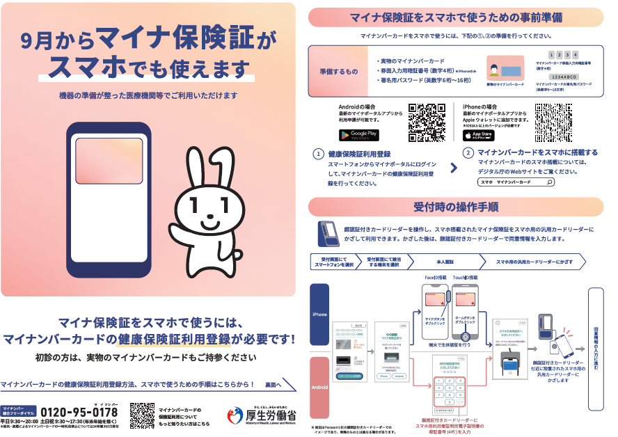 スマートフォンを保険証として利用するための設定及び利用方法などは、厚生労働省ホームページをご覧ください。