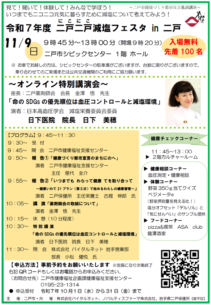 令和7年度二戸二戸(にこにこ)減塩フェスタ in 二戸を開催します